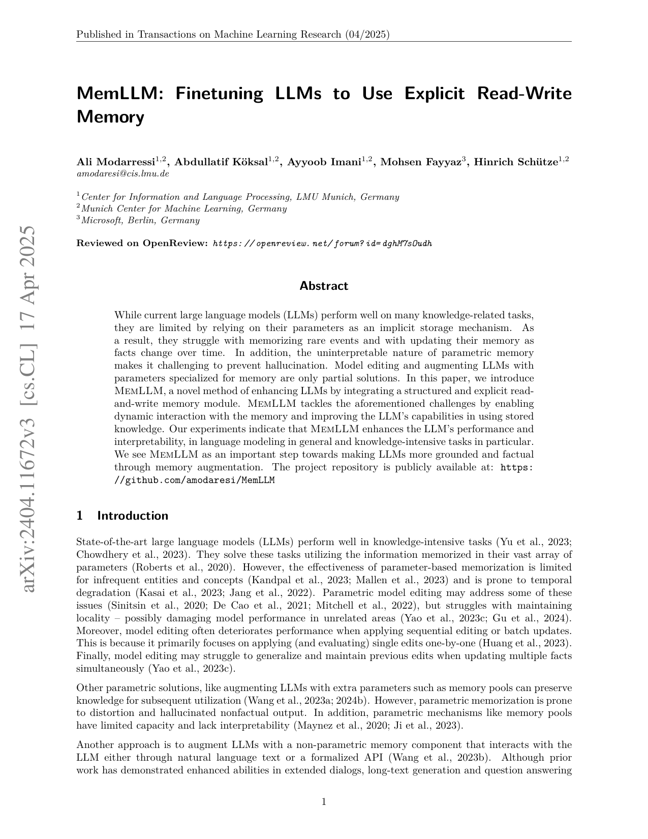 The main mechanisms that are currently used for memory in LLMs — the model parameters, long context and RAG — all have drawbacks. In comparison, the memory systems of biological systems, including humans, are much more powerful. We are interested in creating memories that support continuous updating, yet are fully integrated into the main model.
